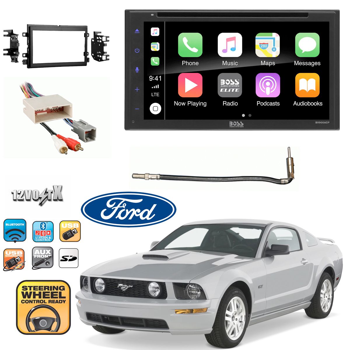 Ford Mustang 2005-2012 BV900ACPDigital multimedia receiver (does not play CDs) With Dash Kit and Install Parts!!Boss Audio General Features: DVD...