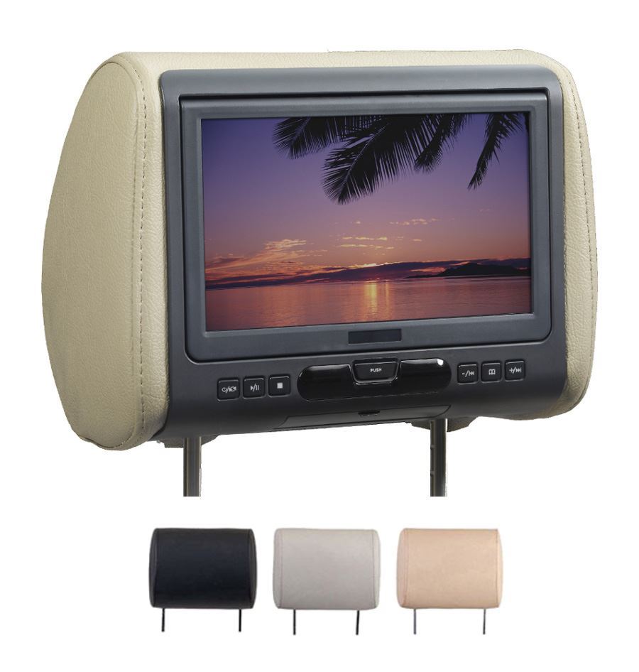 Universal headrest with built-in DVD player. Each Sold Separately. Comes with black, Grey and tan headcover. HDMI/MHL...