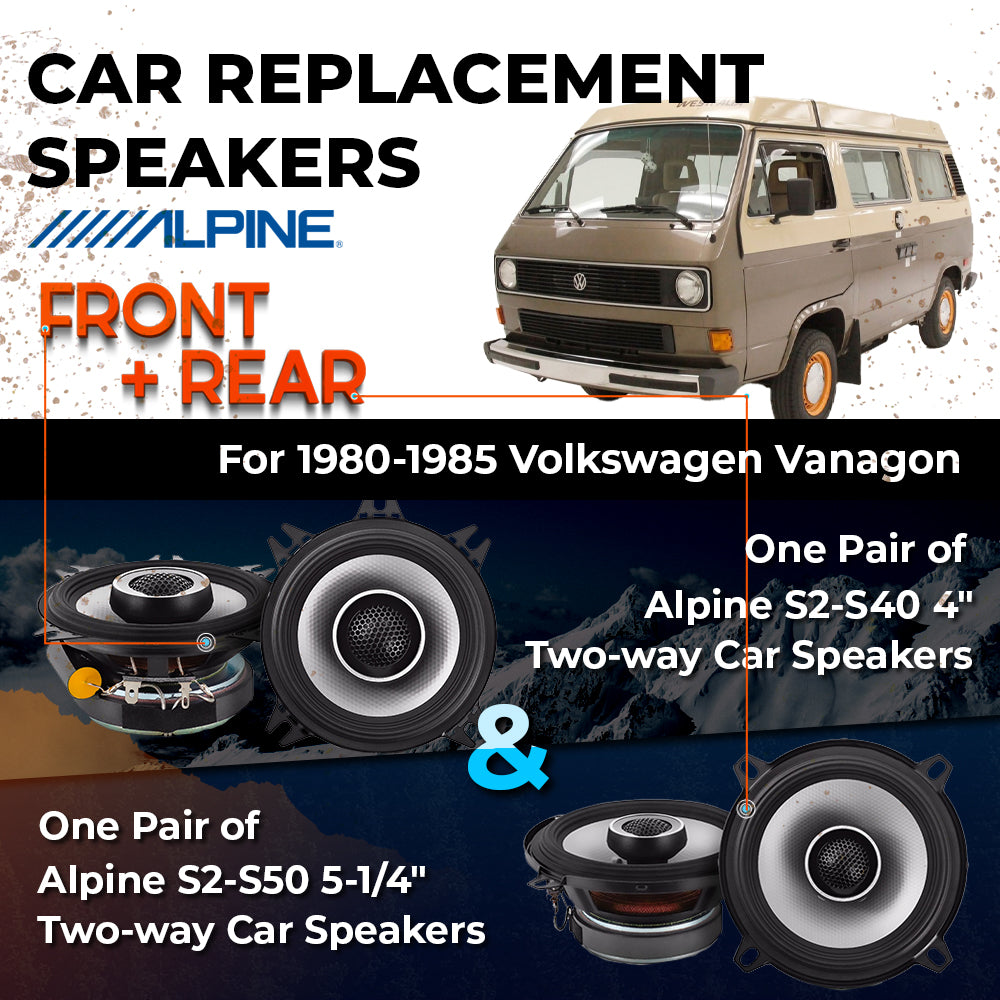 CAR REPLACEMENT SPEAKER PACKAGE FOR 1980-1985 for Volkswagen Vanagon VEHICLES THIS PACKAGE INCLUDES THE FOLLOWING: Alpine S2-S40...