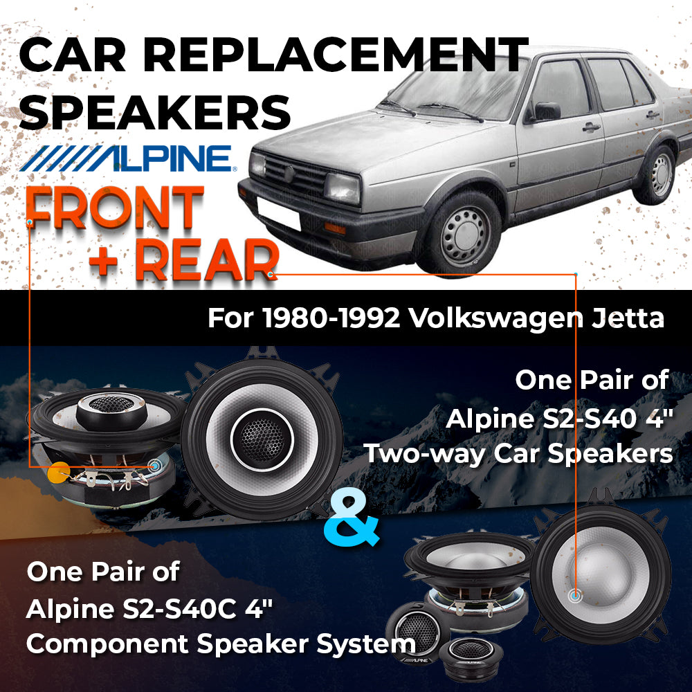 CAR REPLACEMENT SPEAKER PACKAGE FOR 1980-1992 for Volkswagen Jetta VEHICLES THIS PACKAGE INCLUDES THE FOLLOWING: Alpine S2-S40...