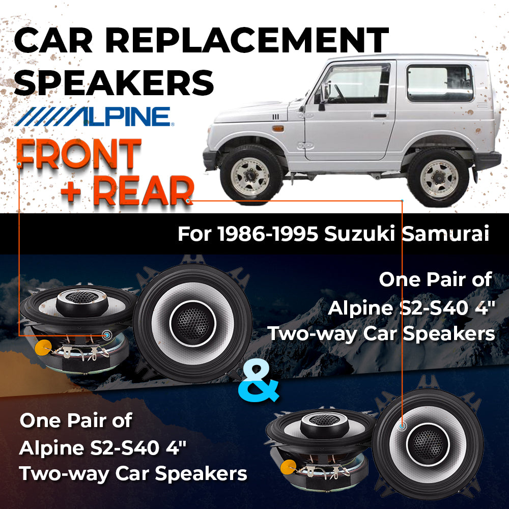CAR REPLACEMENT SPEAKER PACKAGE FOR 1986-1995 for Suzuki Samurai VEHICLES THIS PACKAGE INCLUDES THE FOLLOWING: Alpine S2-S40...