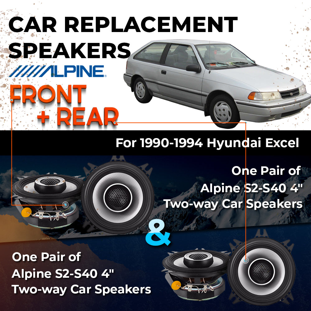 CAR REPLACEMENT SPEAKER PACKAGE FOR 1990-1994 for Hyundai Excel VEHICLES THIS PACKAGE INCLUDES THE FOLLOWING: Alpine S2-S40...