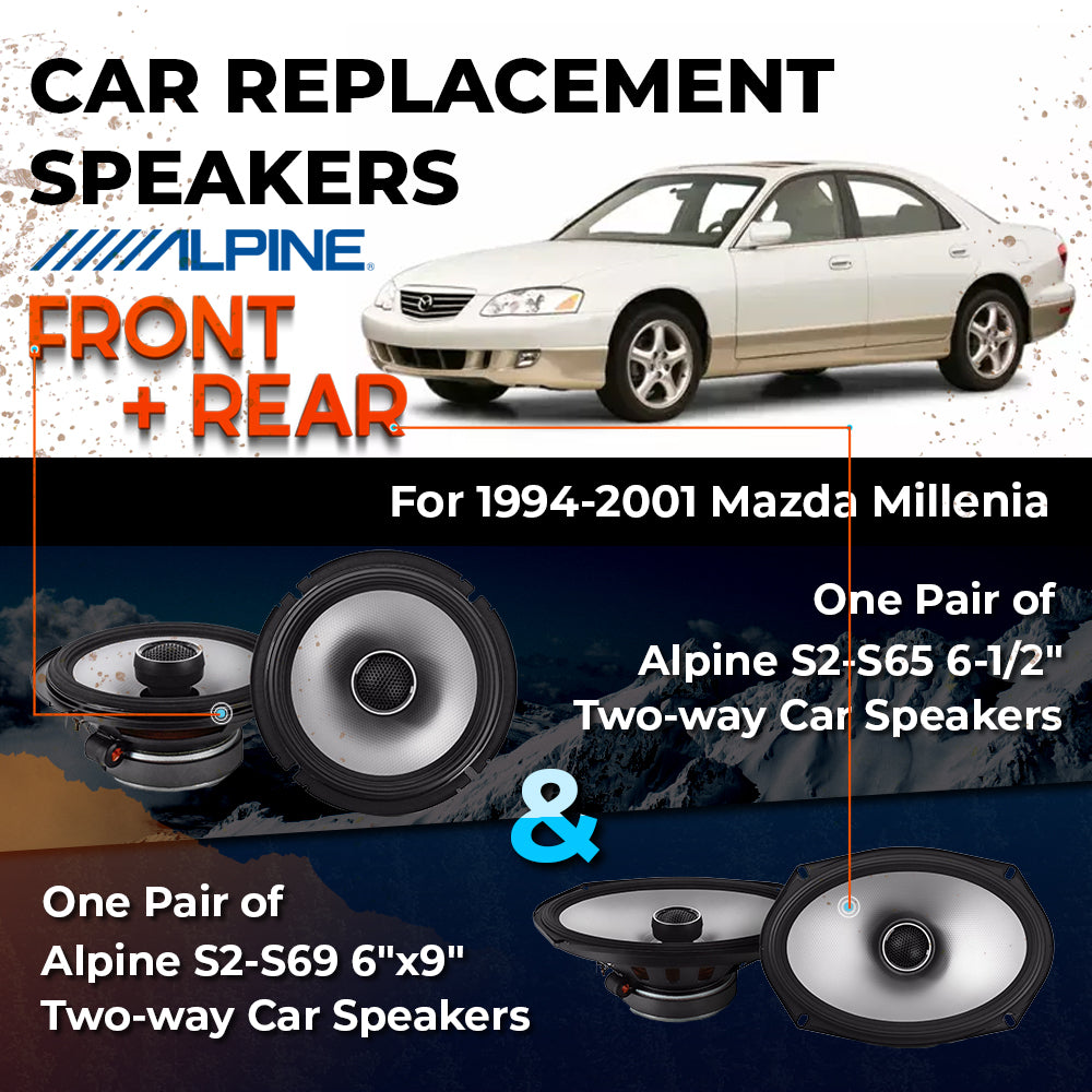 CAR REPLACEMENT SPEAKER PACKAGE FOR 1994-2001 for Mazda Millenia VEHICLES THIS PACKAGE INCLUDES THE FOLLOWING: Alpine S2-S65...