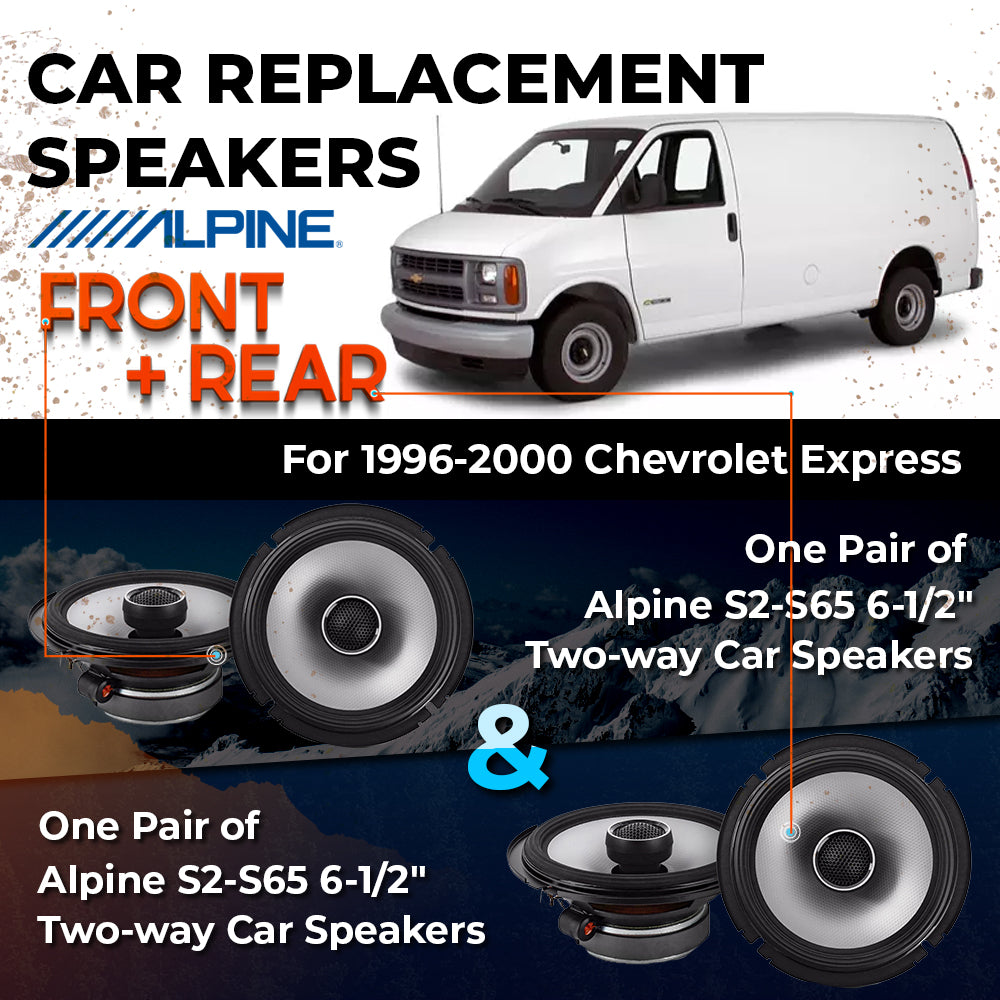 CAR REPLACEMENT SPEAKER PACKAGE FOR 1996-2000 for Chevrolet Express VEHICLES THIS PACKAGE INCLUDES THE FOLLOWING: Alpine S2-S65...