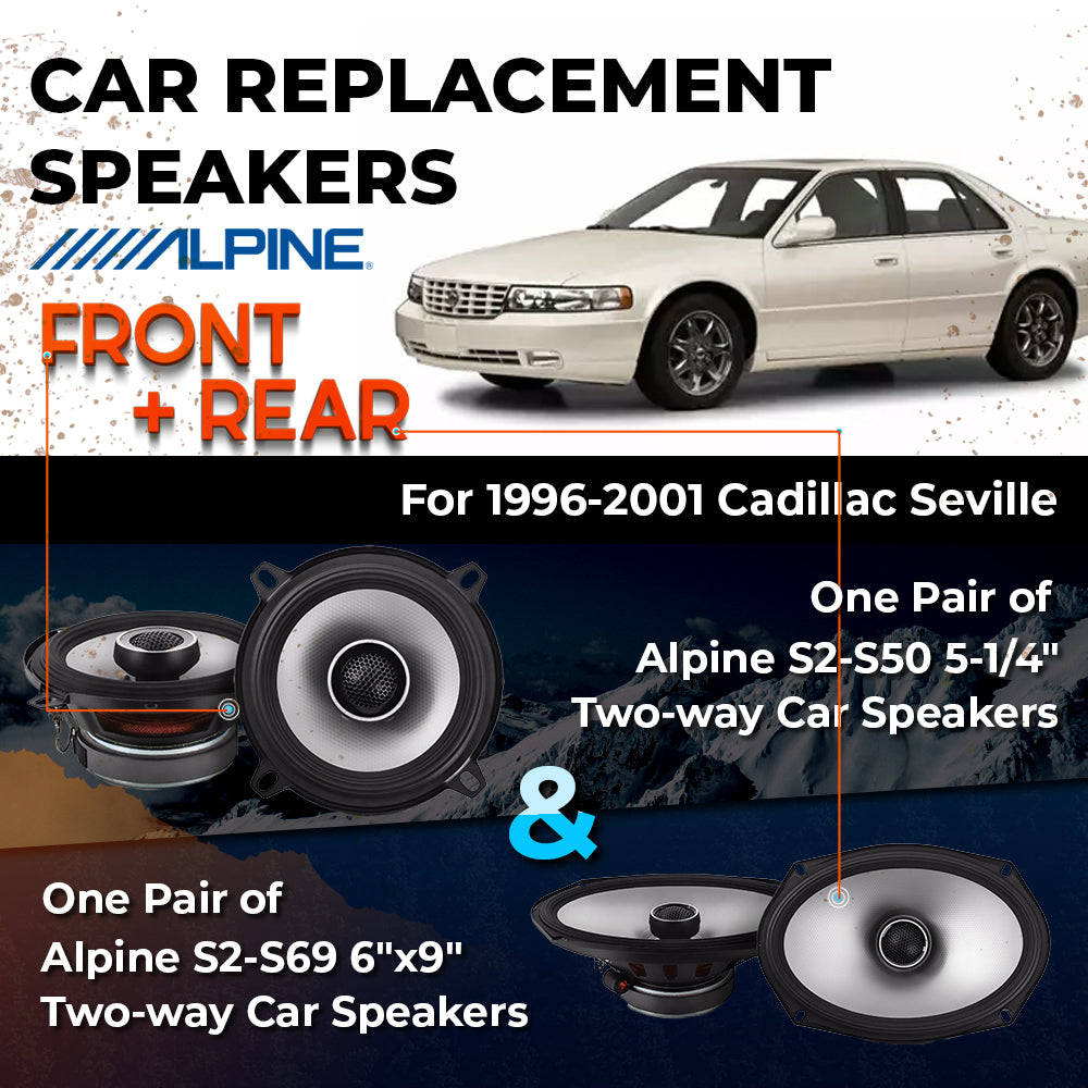 CAR REPLACEMENT SPEAKER PACKAGE FOR 1996-2001 for Cadillac Seville VEHICLES THIS PACKAGE INCLUDES THE FOLLOWING: Alpine S2-S50...
