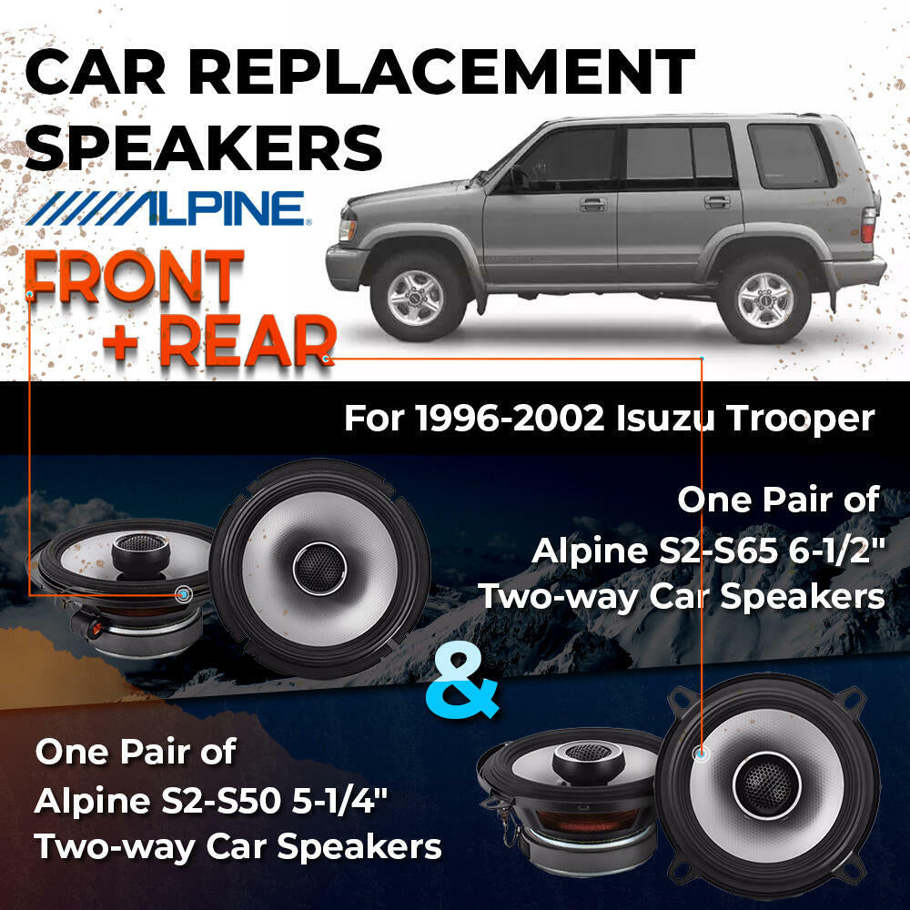 CAR REPLACEMENT SPEAKER PACKAGE FOR 1996-2002 for Isuzu Trooper VEHICLES THIS PACKAGE INCLUDES THE FOLLOWING: Alpine S2-S65...