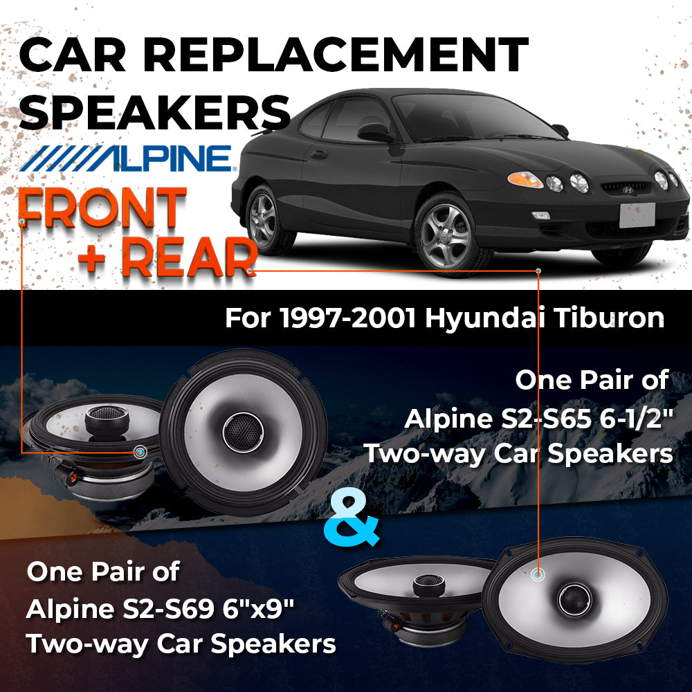 CAR REPLACEMENT SPEAKER PACKAGE FOR 1997-2001 for Hyundai Tiburon VEHICLES THIS PACKAGE INCLUDES THE FOLLOWING: Alpine S2-S65...