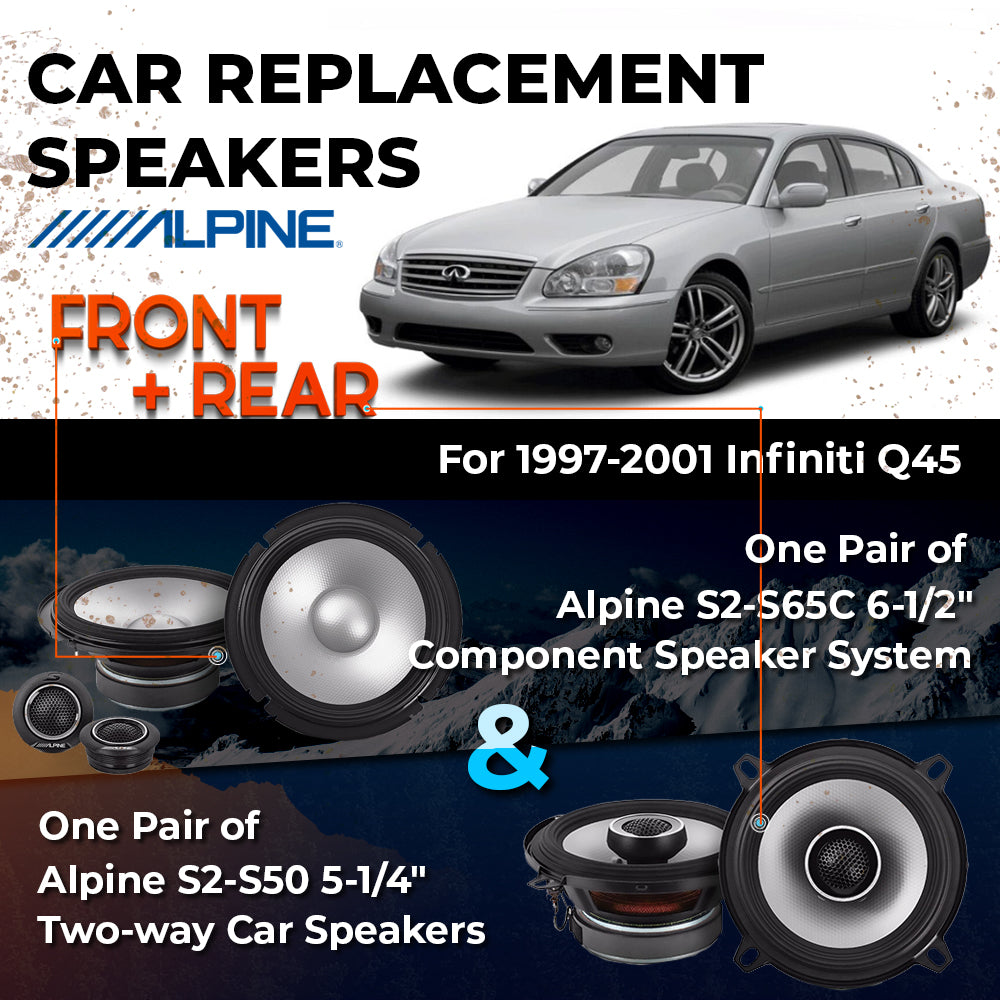 CAR REPLACEMENT SPEAKER PACKAGE FOR 1997-2001 for Infiniti Q45 VEHICLES THIS PACKAGE INCLUDES THE FOLLOWING: Alpine S2-S65C...