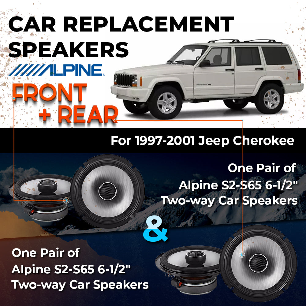 CAR REPLACEMENT SPEAKER PACKAGE FOR 1997-2001 for Jeep Cherokee VEHICLES THIS PACKAGE INCLUDES THE FOLLOWING: Alpine S2-S65...