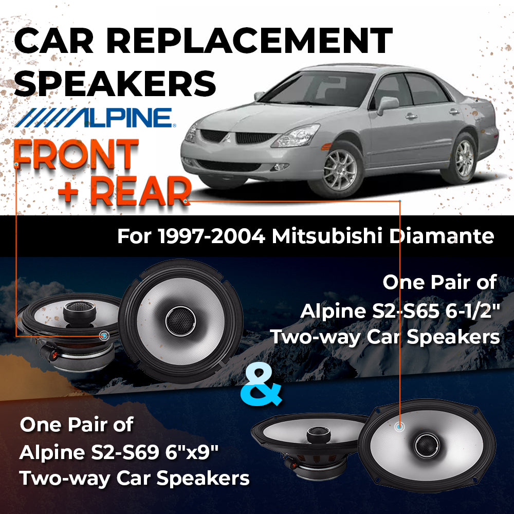 CAR REPLACEMENT SPEAKER PACKAGE FOR 1997-2004 for Mitsubishi Diamante VEHICLES THIS PACKAGE INCLUDES THE FOLLOWING: Alpine S2-S65...