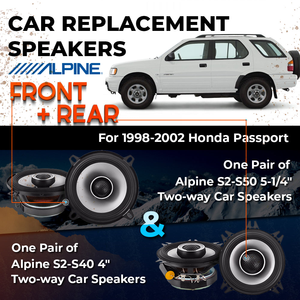 CAR REPLACEMENT SPEAKER PACKAGE FOR 1998-2002 for Honda Passport VEHICLES THIS PACKAGE INCLUDES THE FOLLOWING: Alpine S2-S50...