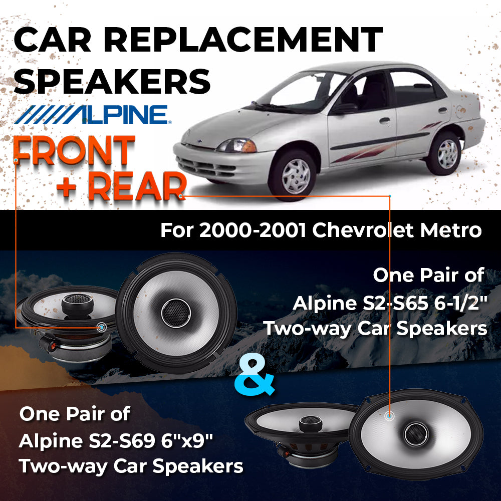 CAR REPLACEMENT SPEAKER PACKAGE FOR 2000-2001 for Chevrolet Metro VEHICLES THIS PACKAGE INCLUDES THE FOLLOWING: Alpine S2-S65...