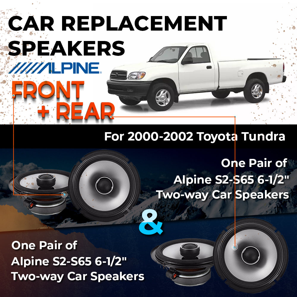 CAR REPLACEMENT SPEAKER PACKAGE FOR 2000-2002 for Toyota Tundra crew cabVEHICLES THIS PACKAGE INCLUDES THE FOLLOWING: Alpine...