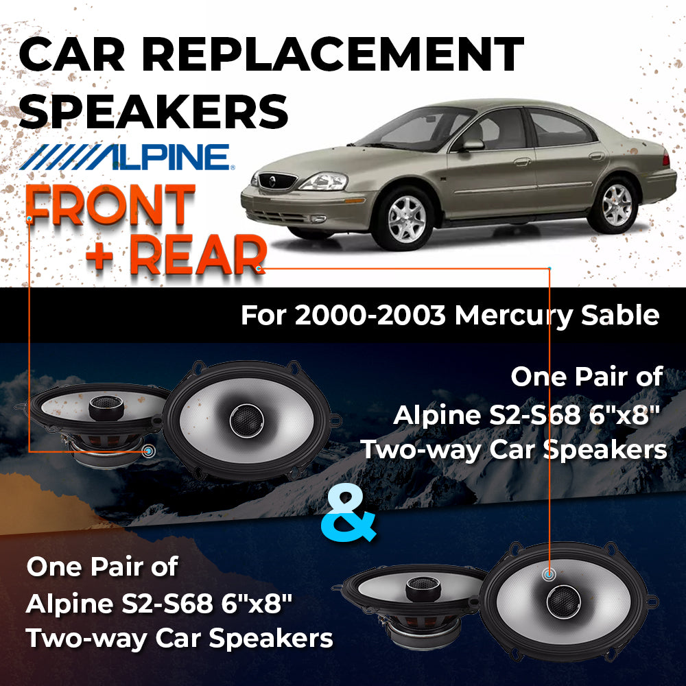 CAR REPLACEMENT SPEAKER PACKAGE FOR 2000-2003 for Mercury Sable VEHICLES THIS PACKAGE INCLUDES THE FOLLOWING: Alpine S2-S68...