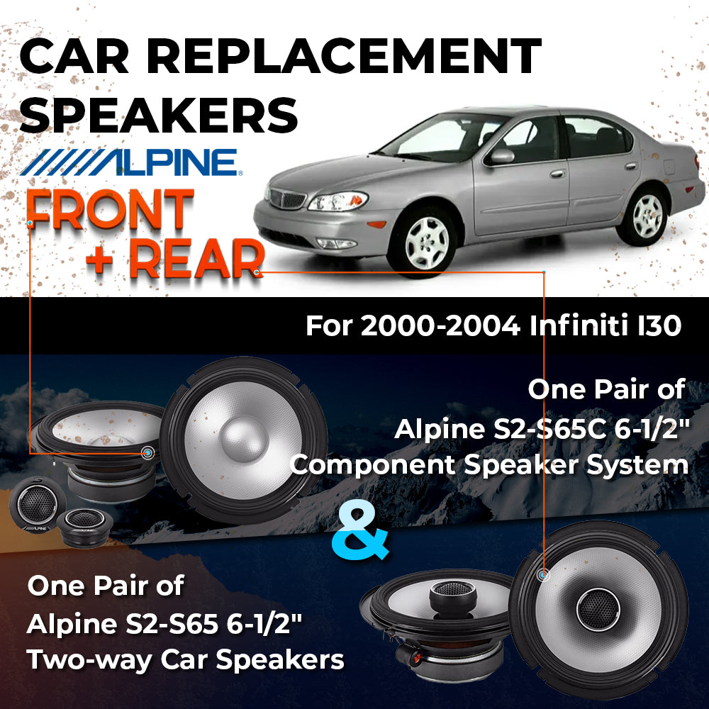 CAR REPLACEMENT SPEAKER PACKAGE FOR 2000-2004 for Infiniti I30 VEHICLES THIS PACKAGE INCLUDES THE FOLLOWING: Alpine S2-S65C...
