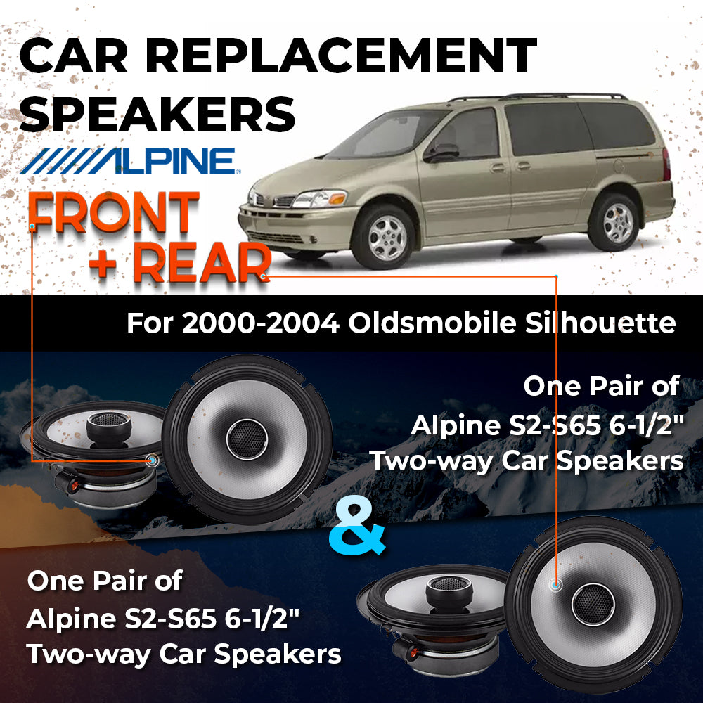 CAR REPLACEMENT SPEAKER PACKAGE FOR 2000-2004 for Oldsmobile Silhouette VEHICLES THIS PACKAGE INCLUDES THE FOLLOWING: Alpine S2-S65...