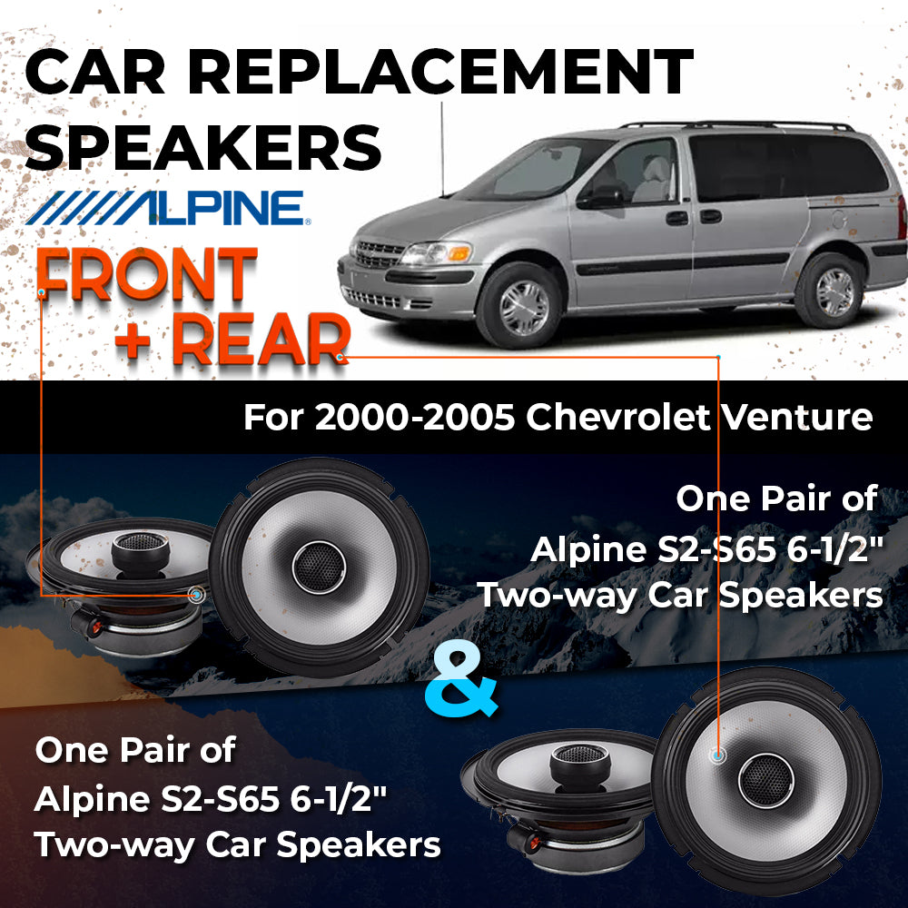 CAR REPLACEMENT SPEAKER PACKAGE FOR 2000-2005 for Chevrolet Venture VEHICLES THIS PACKAGE INCLUDES THE FOLLOWING: Alpine S2-S65...