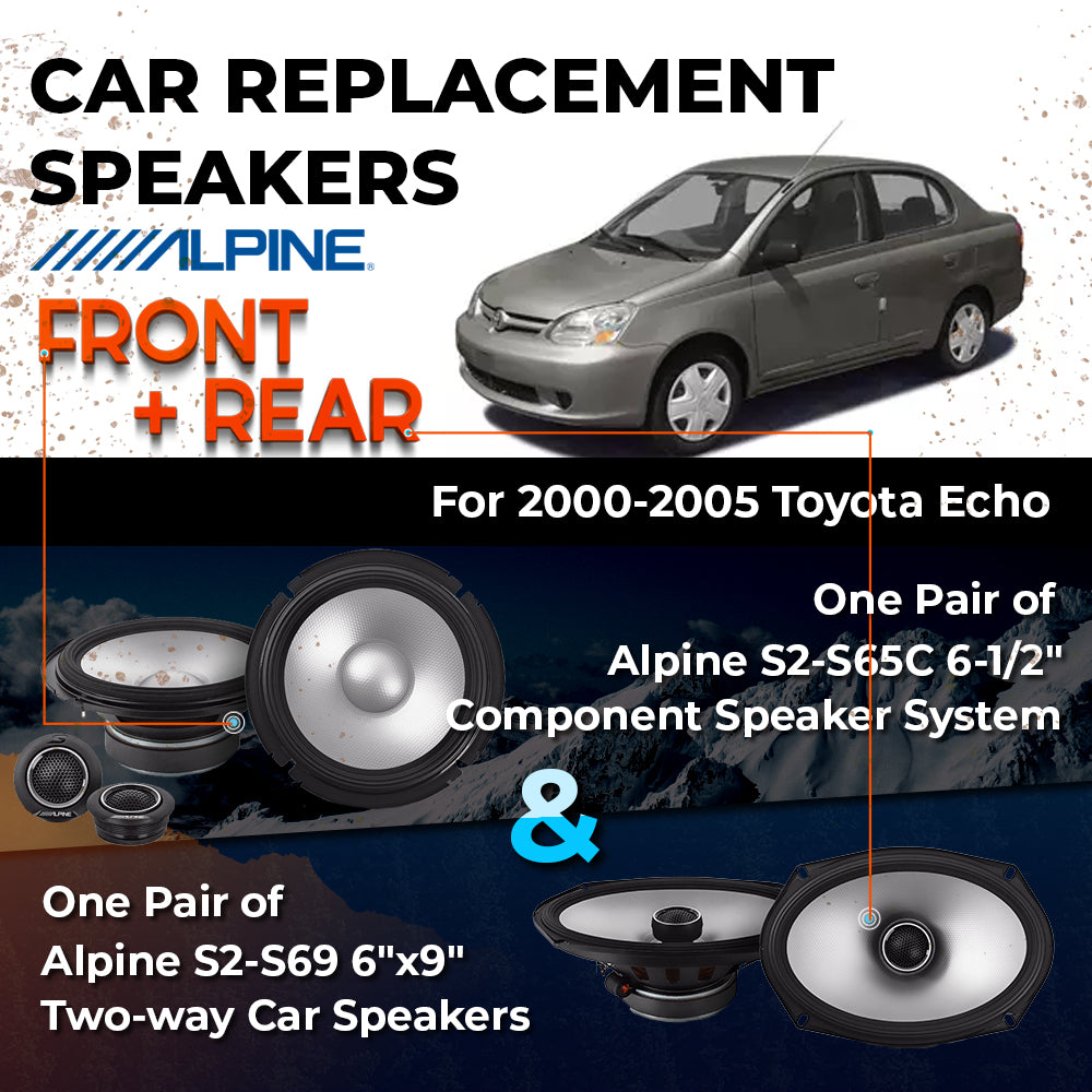 CAR REPLACEMENT SPEAKER PACKAGE FOR 2000-2005 for Toyota Echo VEHICLES THIS PACKAGE INCLUDES THE FOLLOWING: Alpine S2-S65C...