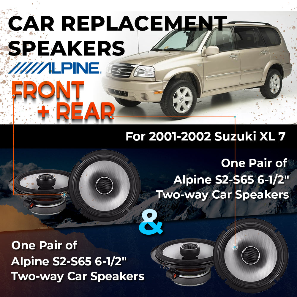 CAR REPLACEMENT SPEAKER PACKAGE FOR 2001-2002 for Suzuki XL-7 VEHICLES THIS PACKAGE INCLUDES THE FOLLOWING: Alpine S2-S65...