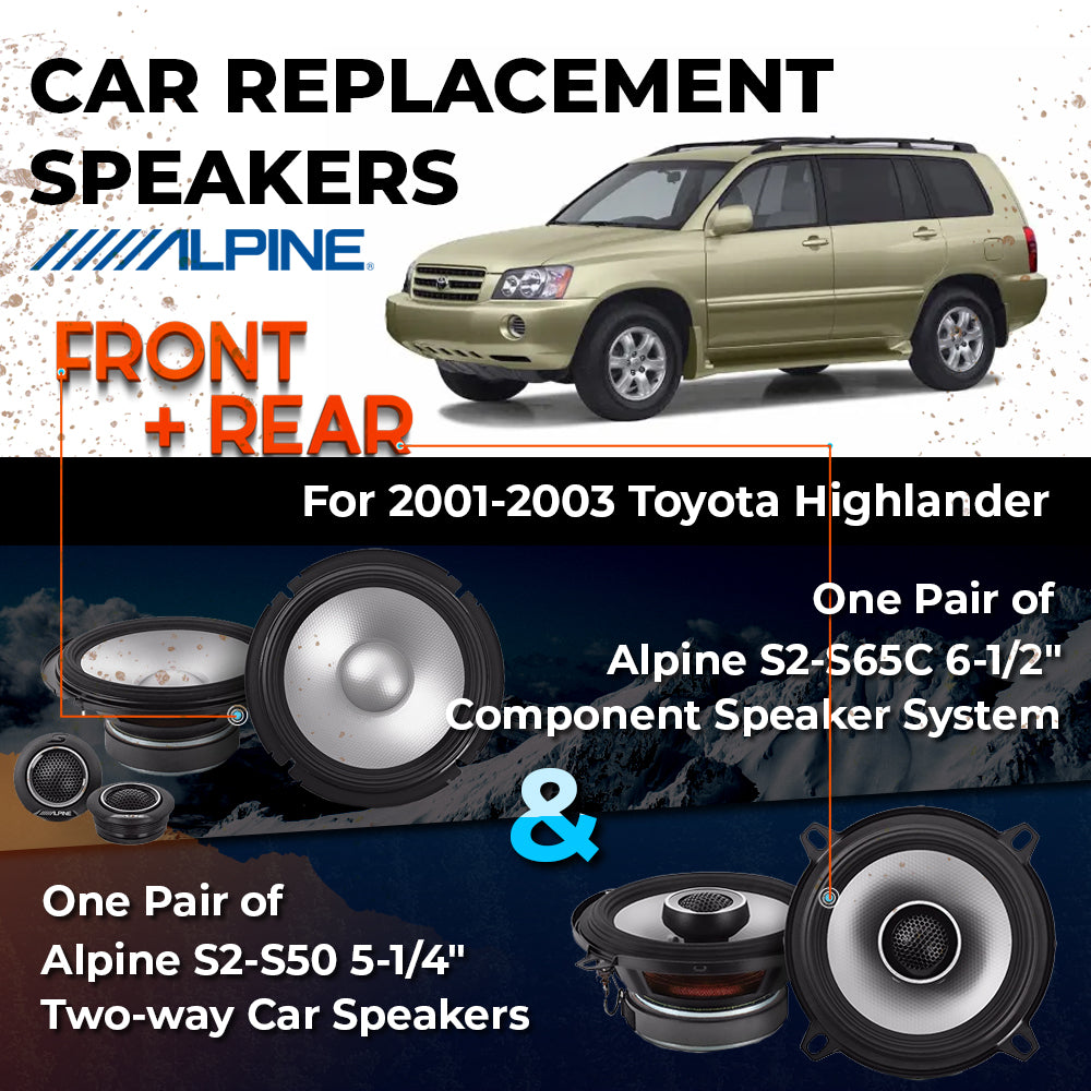 CAR REPLACEMENT SPEAKER PACKAGE FOR 2001-2003 for Toyota Highlander VEHICLES THIS PACKAGE INCLUDES THE FOLLOWING: Alpine S2-S65C...