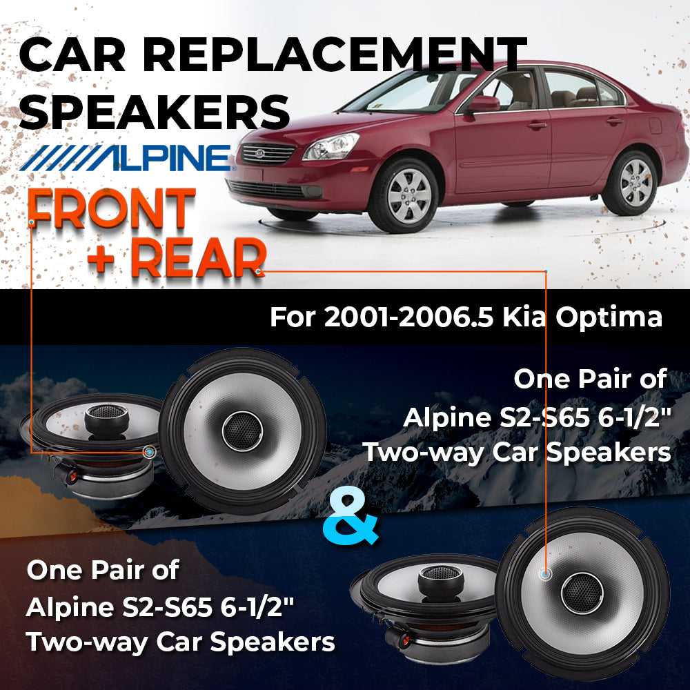 CAR REPLACEMENT SPEAKER PACKAGE FOR 2001-2006.5 for Kia Optima VEHICLES THIS PACKAGE INCLUDES THE FOLLOWING: Alpine S2-S65...