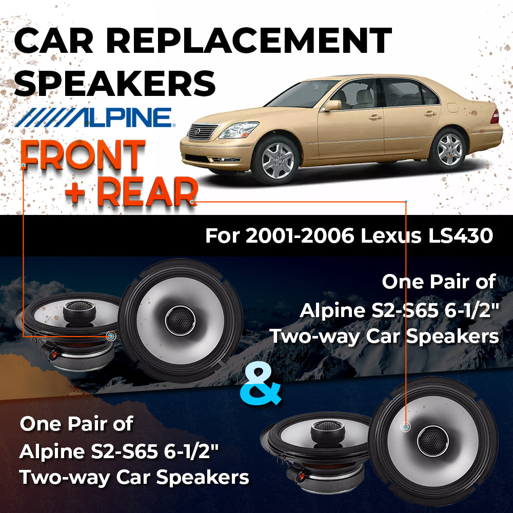 CAR REPLACEMENT SPEAKER PACKAGE FOR 2001-2006 for Lexus LS430 VEHICLES THIS PACKAGE INCLUDES THE FOLLOWING: Alpine S2-S65...