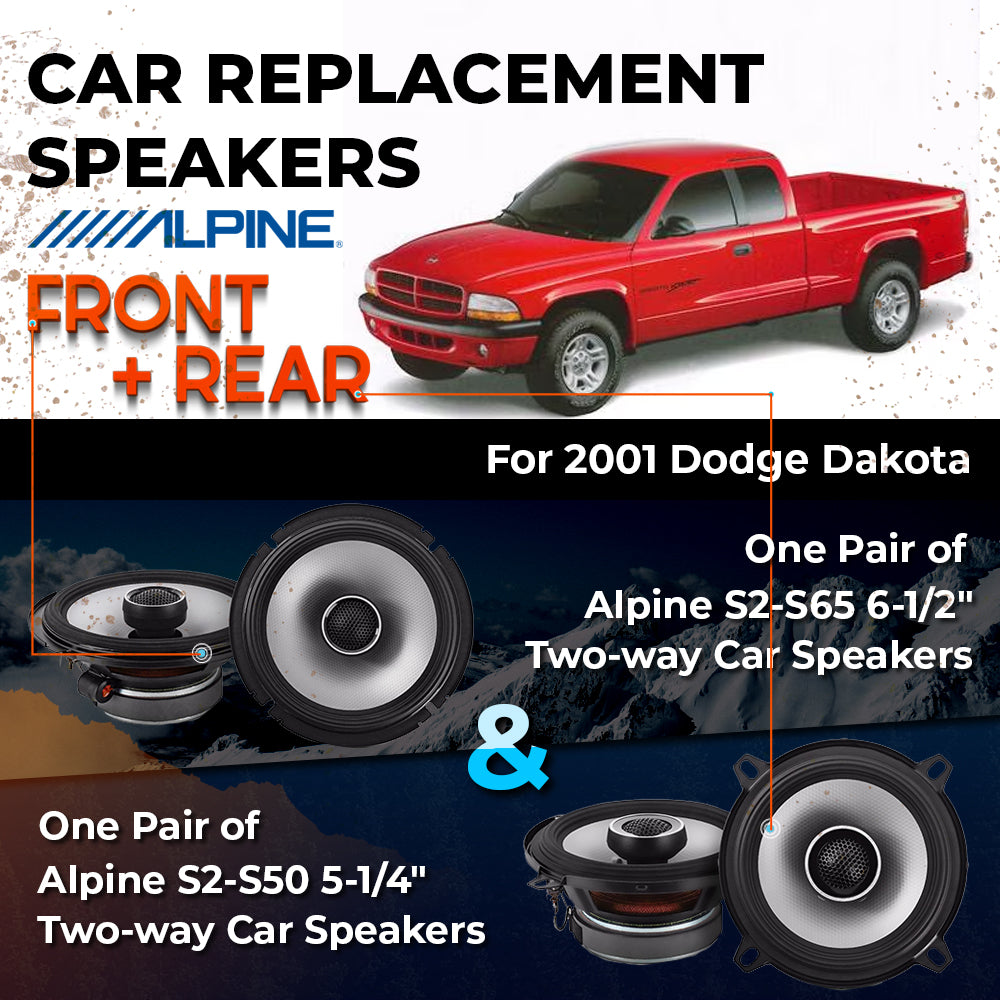 CAR REPLACEMENT SPEAKER PACKAGE FOR 2001 for Dodge Dakota VEHICLES THIS PACKAGE INCLUDES THE FOLLOWING: Alpine S2-S65...