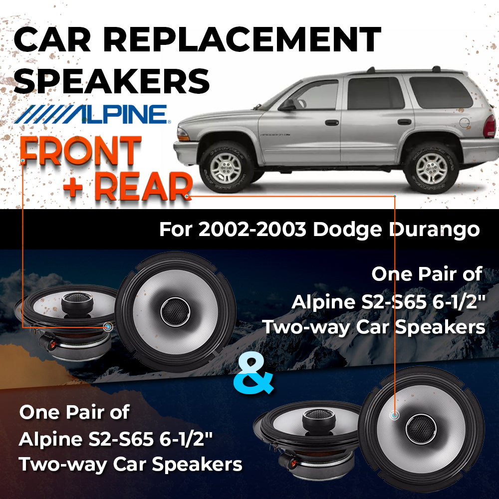 CAR REPLACEMENT SPEAKER PACKAGE FOR 2002-2003 for Dodge Durango VEHICLES THIS PACKAGE INCLUDES THE FOLLOWING: Alpine S2-S65...