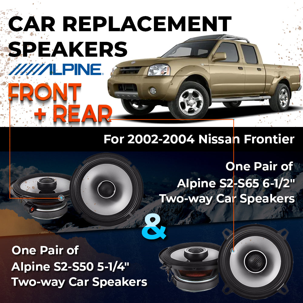 CAR REPLACEMENT SPEAKER PACKAGE FOR 2002-2004 for Nissan Frontier VEHICLES THIS PACKAGE INCLUDES THE FOLLOWING: Alpine S2-S65...