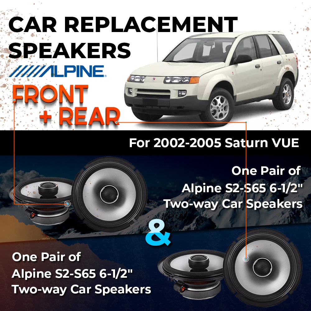 CAR REPLACEMENT SPEAKER PACKAGE FOR 2002-2005 for Saturn VUE VEHICLES THIS PACKAGE INCLUDES THE FOLLOWING: Alpine S2-S65...