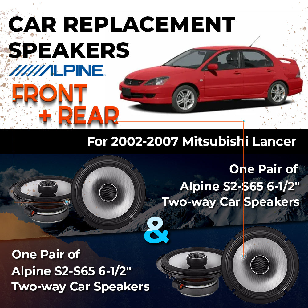 CAR REPLACEMENT SPEAKER PACKAGE FOR 2002-2007 for Mitsubishi Lancer VEHICLES THIS PACKAGE INCLUDES THE FOLLOWING: Alpine S2-S65...
