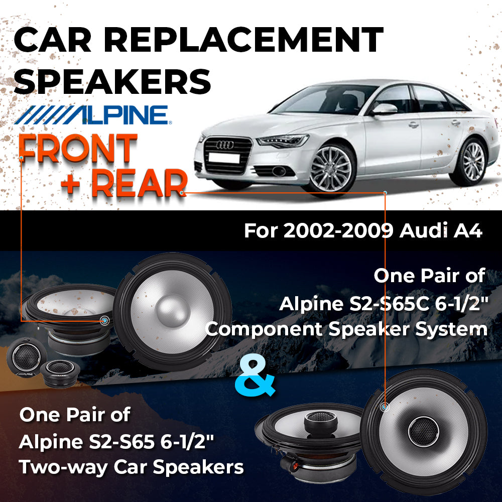 CAR REPLACEMENT SPEAKER PACKAGE FOR 2002-2009 for Audi A4 ConvertibleVEHICLES THIS PACKAGE INCLUDES THE FOLLOWING: Alpine S2-S65C...