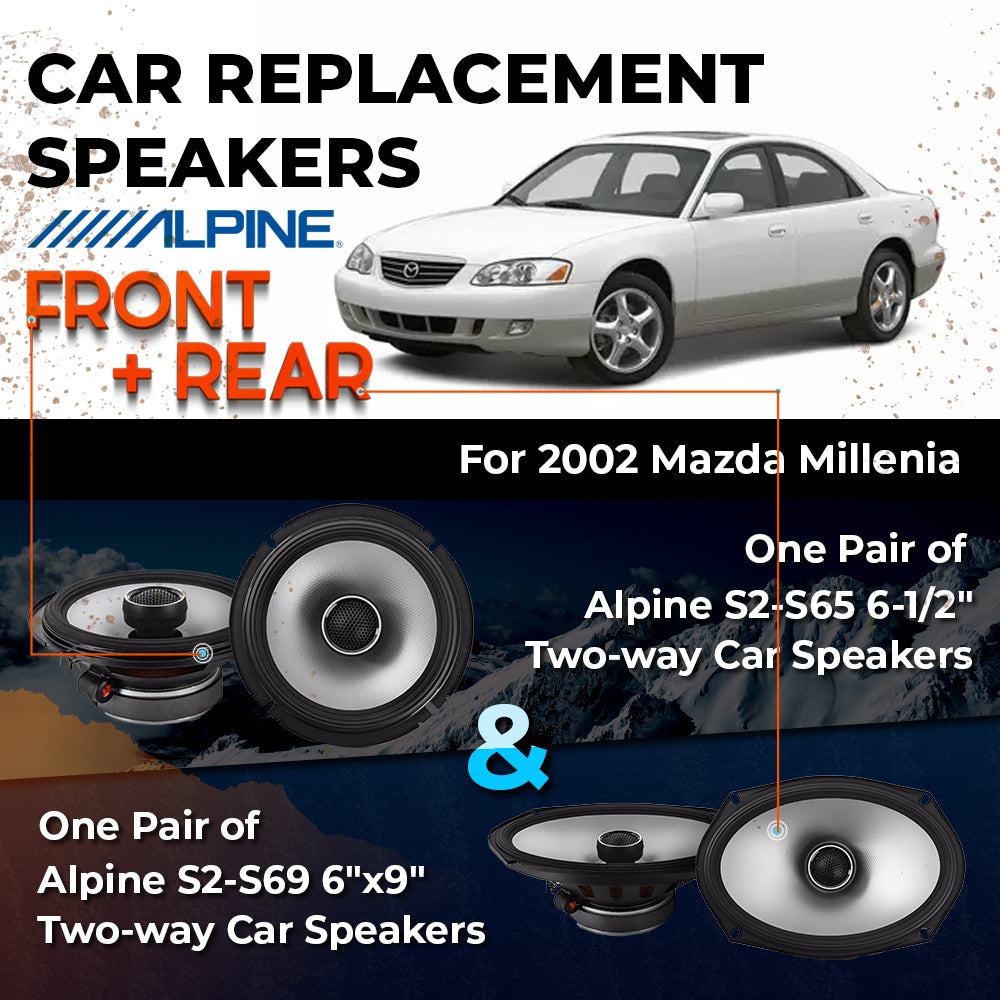 CAR REPLACEMENT SPEAKER PACKAGE FOR 2002 for Mazda Millenia VEHICLES THIS PACKAGE INCLUDES THE FOLLOWING: Alpine S2-S65...