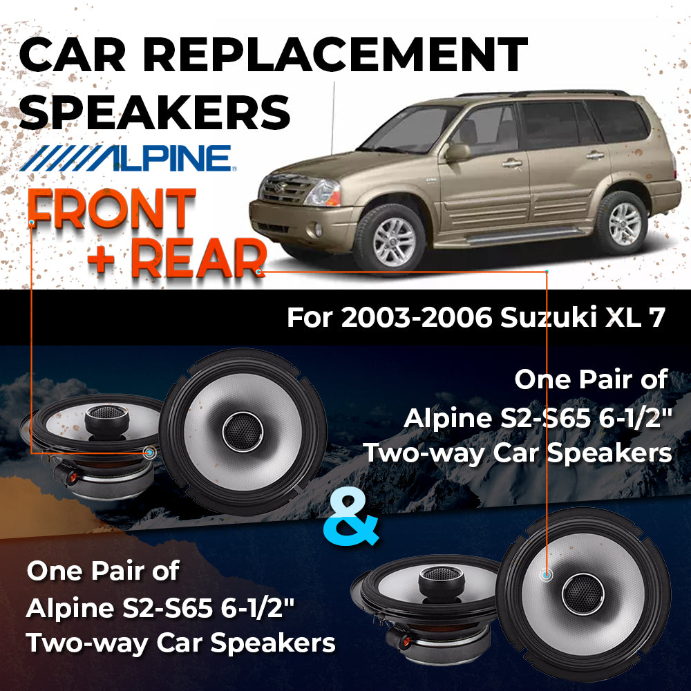 CAR REPLACEMENT SPEAKER PACKAGE FOR 2003-2006 for Suzuki XL-7 VEHICLES THIS PACKAGE INCLUDES THE FOLLOWING: Alpine S2-S65...