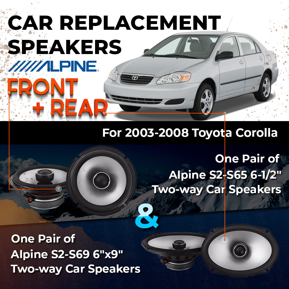 CAR REPLACEMENT SPEAKER PACKAGE FOR 2003-2008 for Toyota Corolla VEHICLES THIS PACKAGE INCLUDES THE FOLLOWING: Alpine S2-S65...
