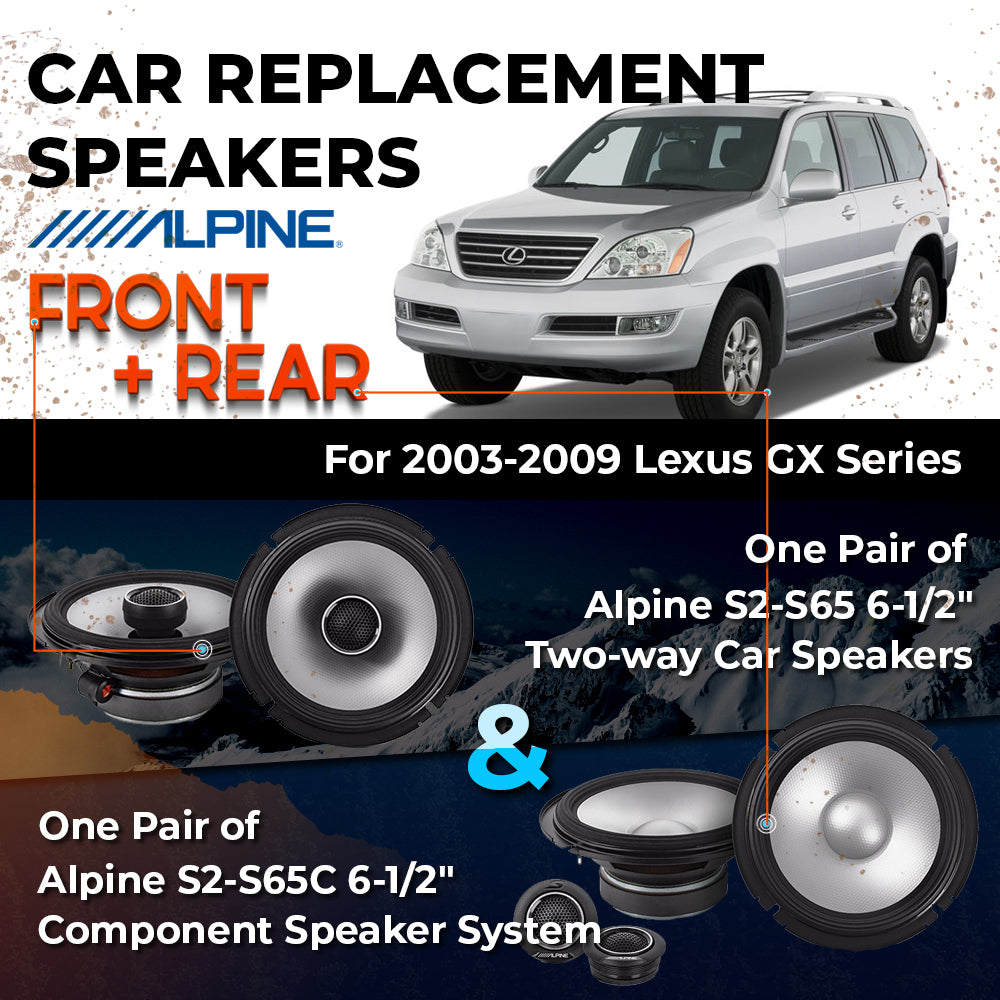 CAR REPLACEMENT SPEAKER PACKAGE FOR 2003-2009 for Lexus GX Series VEHICLES THIS PACKAGE INCLUDES THE FOLLOWING: Alpine...