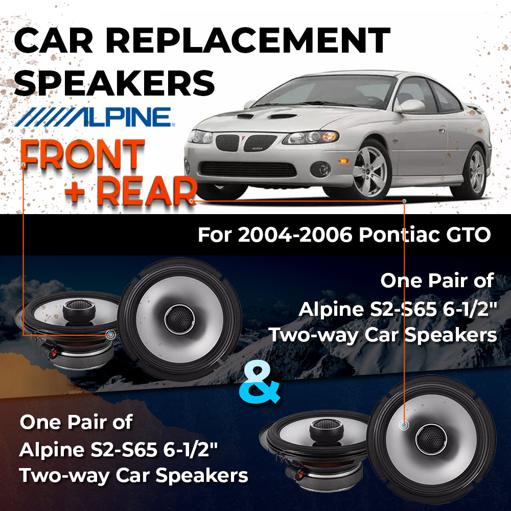 CAR REPLACEMENT SPEAKER PACKAGE FOR 2004-2006 for Pontiac GTO VEHICLES THIS PACKAGE INCLUDES THE FOLLOWING: Alpine S2-S65...