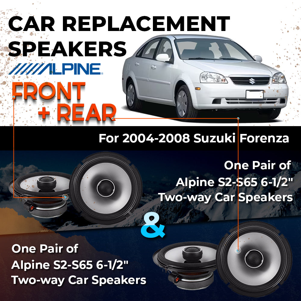 CAR REPLACEMENT SPEAKER PACKAGE FOR 2004-2008 for Suzuki Forenza VEHICLES THIS PACKAGE INCLUDES THE FOLLOWING: Alpine S2-S65...