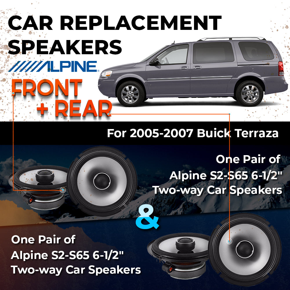 CAR REPLACEMENT SPEAKER PACKAGE FOR 2005-2007 for Buick Terraza VEHICLES THIS PACKAGE INCLUDES THE FOLLOWING: Alpine S2-S65...