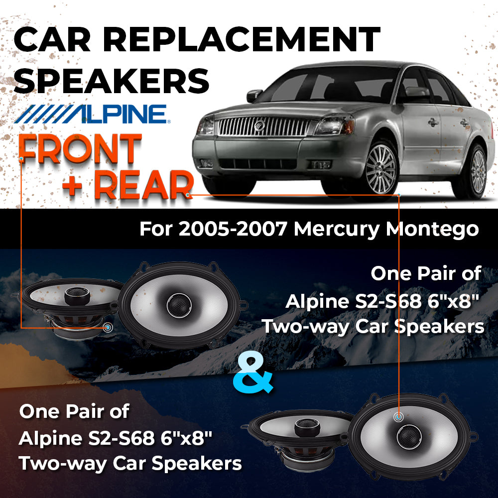 CAR REPLACEMENT SPEAKER PACKAGE FOR 2005-2007 for Mercury Montego VEHICLES THIS PACKAGE INCLUDES THE FOLLOWING: Alpine S2-S68...