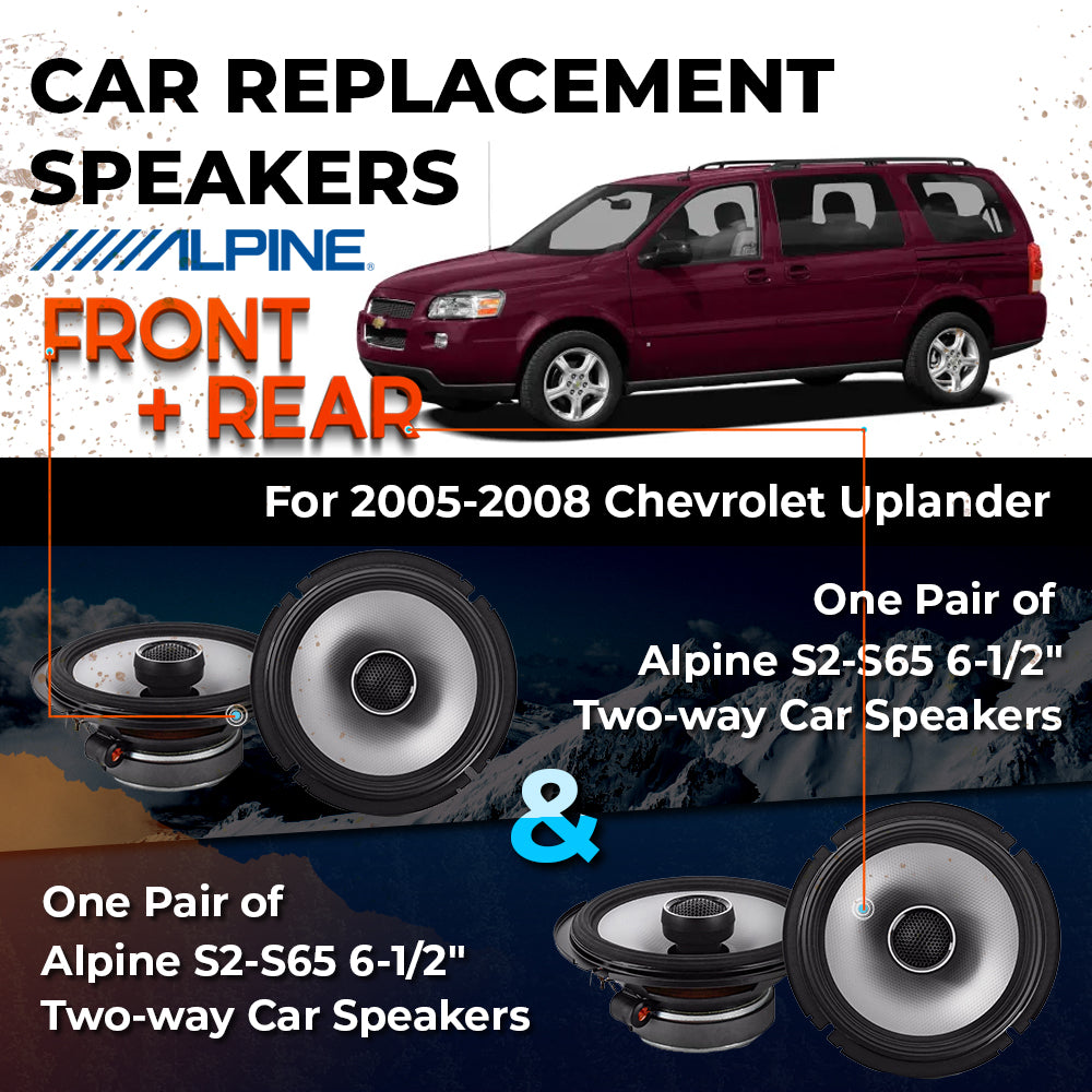 CAR REPLACEMENT SPEAKER PACKAGE FOR 2005-2008 for Chevrolet Uplander VEHICLES THIS PACKAGE INCLUDES THE FOLLOWING: Alpine S2-S65...