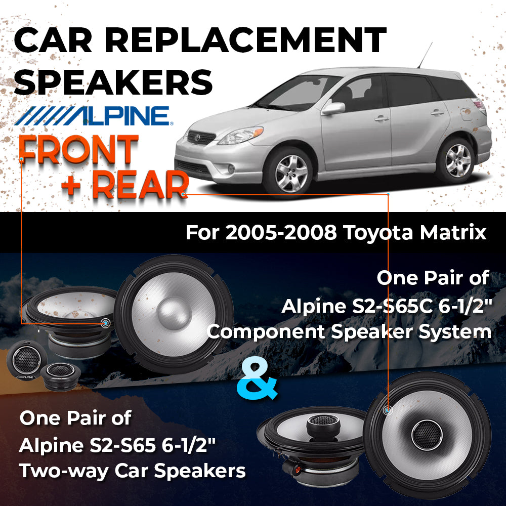 CAR REPLACEMENT SPEAKER PACKAGE FOR 2005-2008 for Toyota Matrix VEHICLES THIS PACKAGE INCLUDES THE FOLLOWING: Alpine S2-S65C...