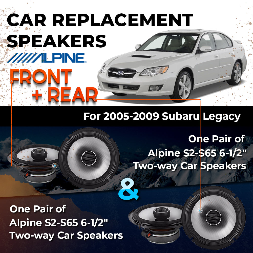 CAR REPLACEMENT SPEAKER PACKAGE FOR 2005-2009 for Subaru Legacy VEHICLES THIS PACKAGE INCLUDES THE FOLLOWING: Alpine S2-S65...