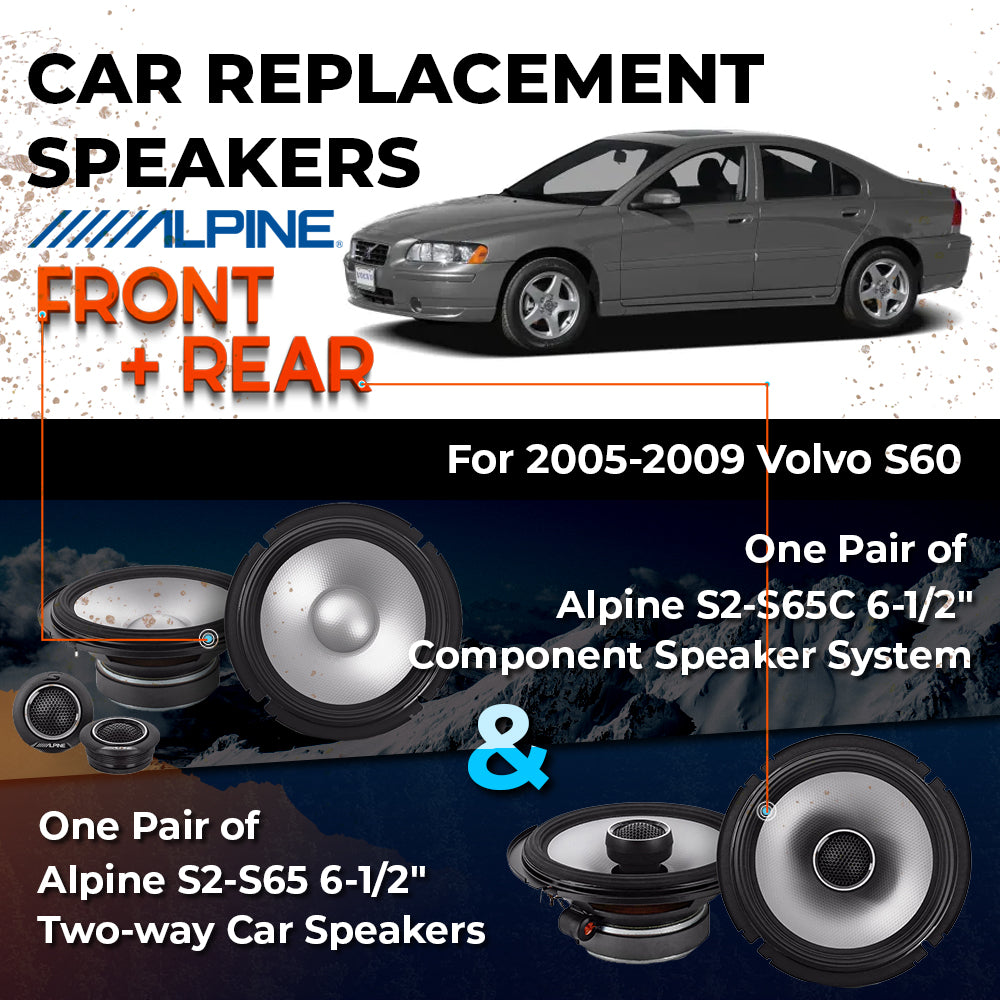 CAR REPLACEMENT SPEAKER PACKAGE FOR 2005-2009 for Volvo S60 VEHICLES THIS PACKAGE INCLUDES THE FOLLOWING: Alpine S2-S65C...