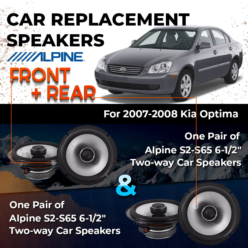CAR REPLACEMENT SPEAKER PACKAGE FOR 2006.5-2008 for Kia Optima VEHICLES THIS PACKAGE INCLUDES THE FOLLOWING: Alpine S2-S65...