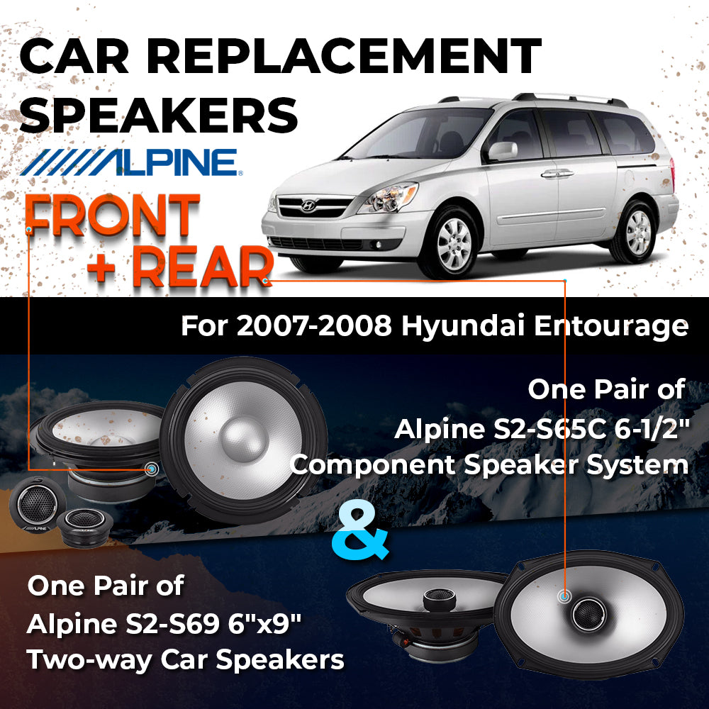 CAR REPLACEMENT SPEAKER PACKAGE FOR 2007-2008 for Hyundai Entourage VEHICLES THIS PACKAGE INCLUDES THE FOLLOWING: Alpine S2-S65C...