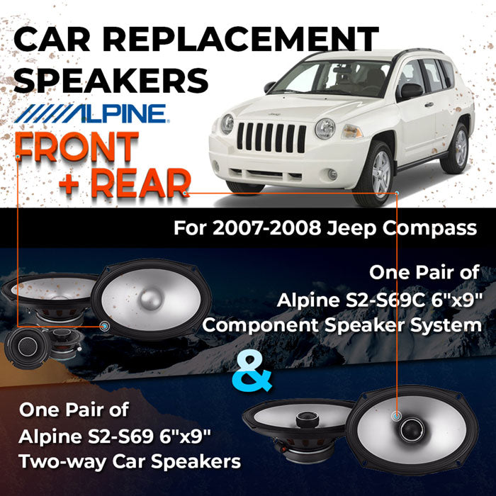 CAR REPLACEMENT SPEAKER PACKAGE FOR 2007-2008 for Jeep Compass VEHICLES THIS PACKAGE INCLUDES THE FOLLOWING: Alpine S2-S69C...