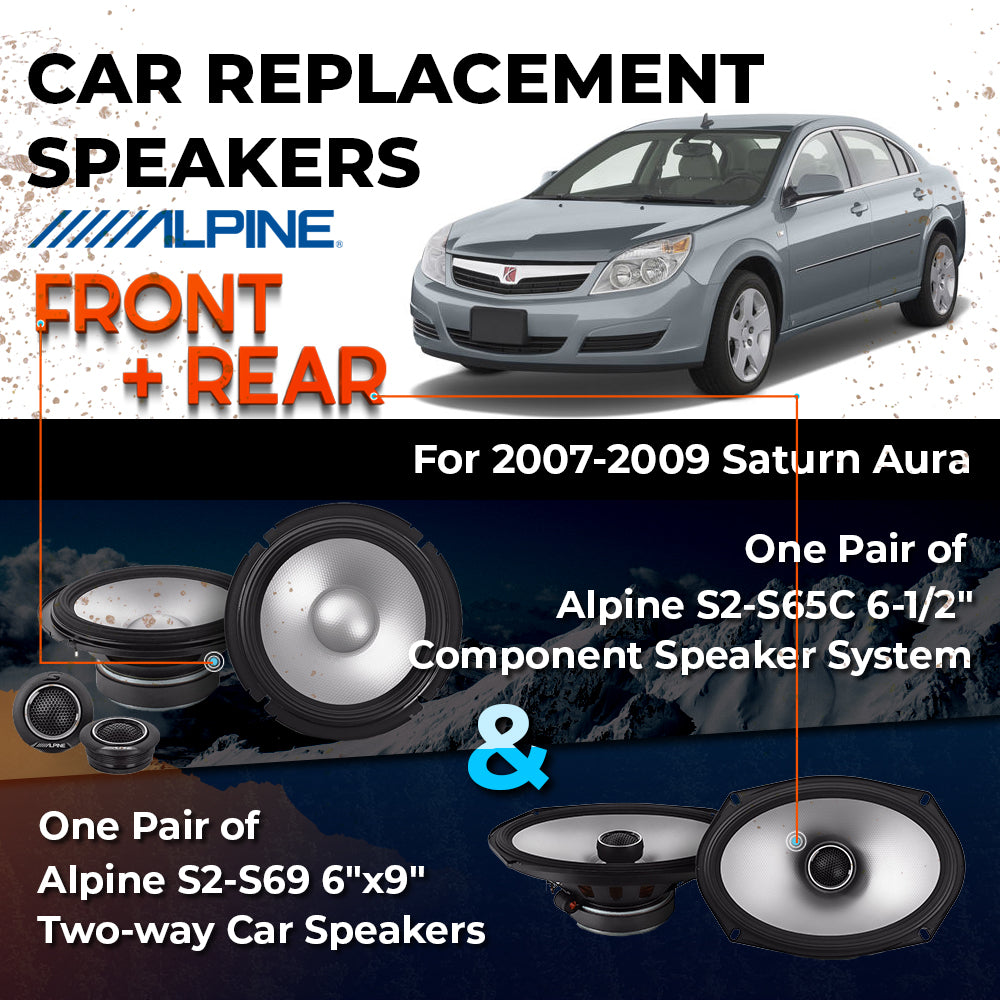 CAR REPLACEMENT SPEAKER PACKAGE FOR 2007-2009 for Saturn Aura VEHICLES THIS PACKAGE INCLUDES THE FOLLOWING: Alpine S2-S65C...