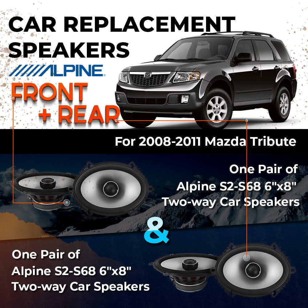 CAR REPLACEMENT SPEAKER PACKAGE FOR 2008-2011 for Mazda Tribute VEHICLES THIS PACKAGE INCLUDES THE FOLLOWING: Alpine S2-S68...