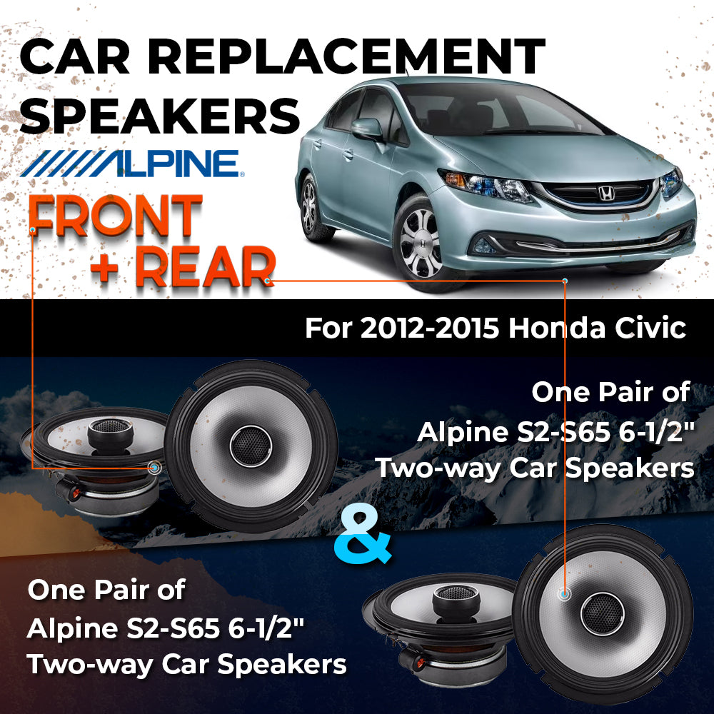 CAR REPLACEMENT SPEAKER PACKAGE FOR 2012-2015 for Honda Civic VEHICLES THIS PACKAGE INCLUDES THE FOLLOWING: Alpine S2-S65...